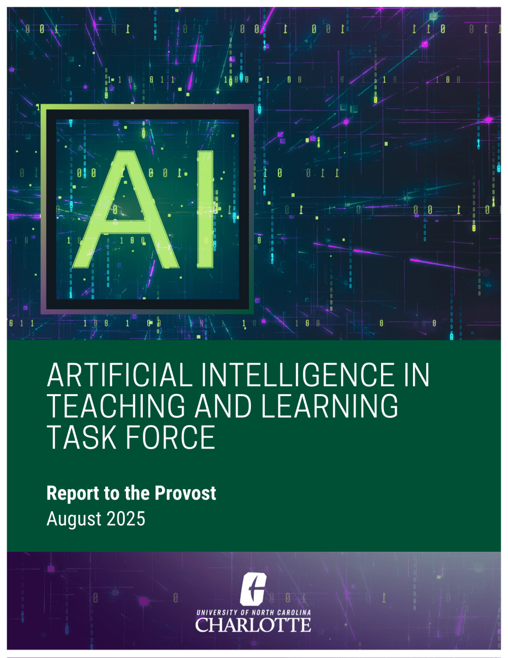 In Fall 2024, the Office of the Provost announced the launch of UNC Charlotte’s Artificial Intelligence in Teaching and Learning Task Force to support the ethical and responsible use of AI in teaching and learning.