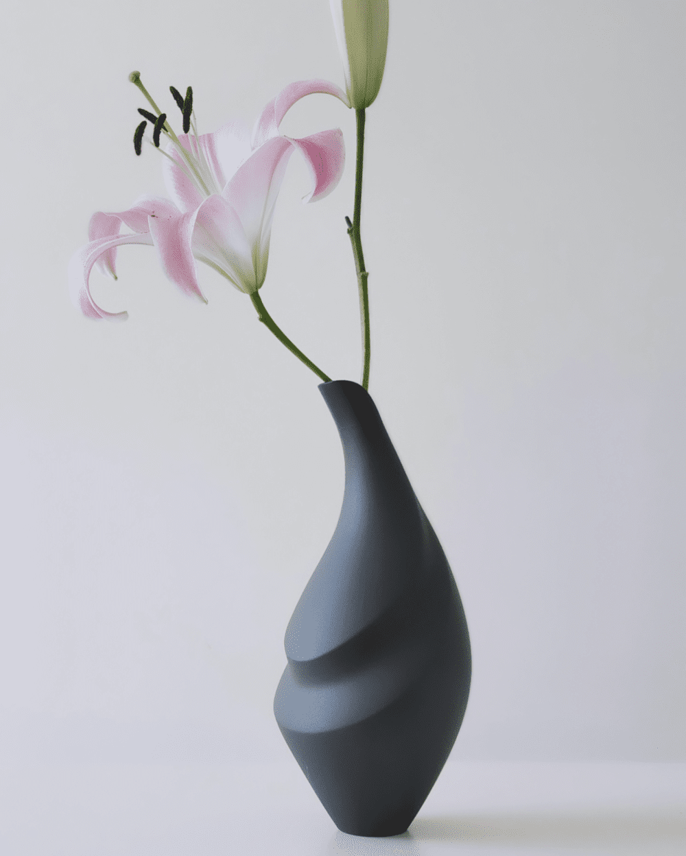 From this, a physical object emerged. She modeled the form in Rhino, 3D printed it, created a plaster mold, and used slip casting to form the ceramic. The final product was a glazed stoneware vase—later exhibited at Milan Design Week 2025 under the curatorial theme Design is Human.