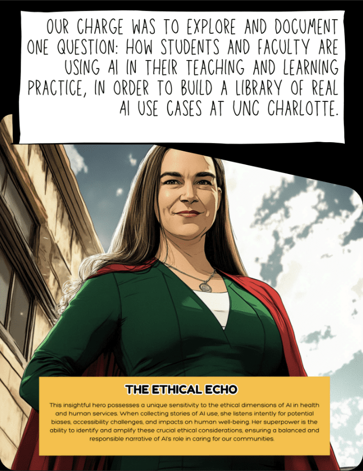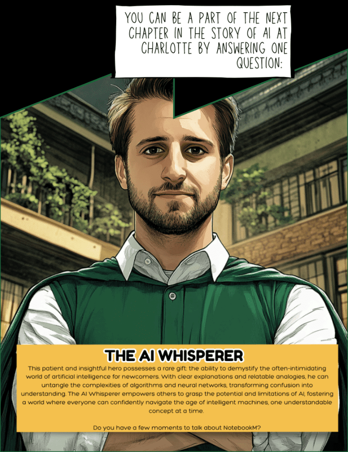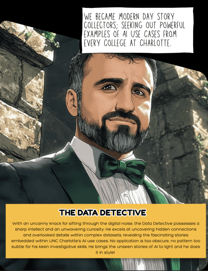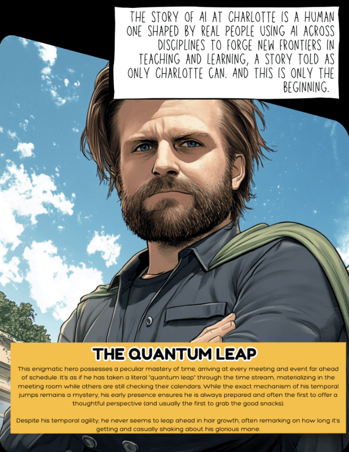 Using our Charlotte AI Stories as data, Dr. D’TAIL is here to help you reflect, explore what’s possible, and design meaningful, ethical uses of AI for your students.